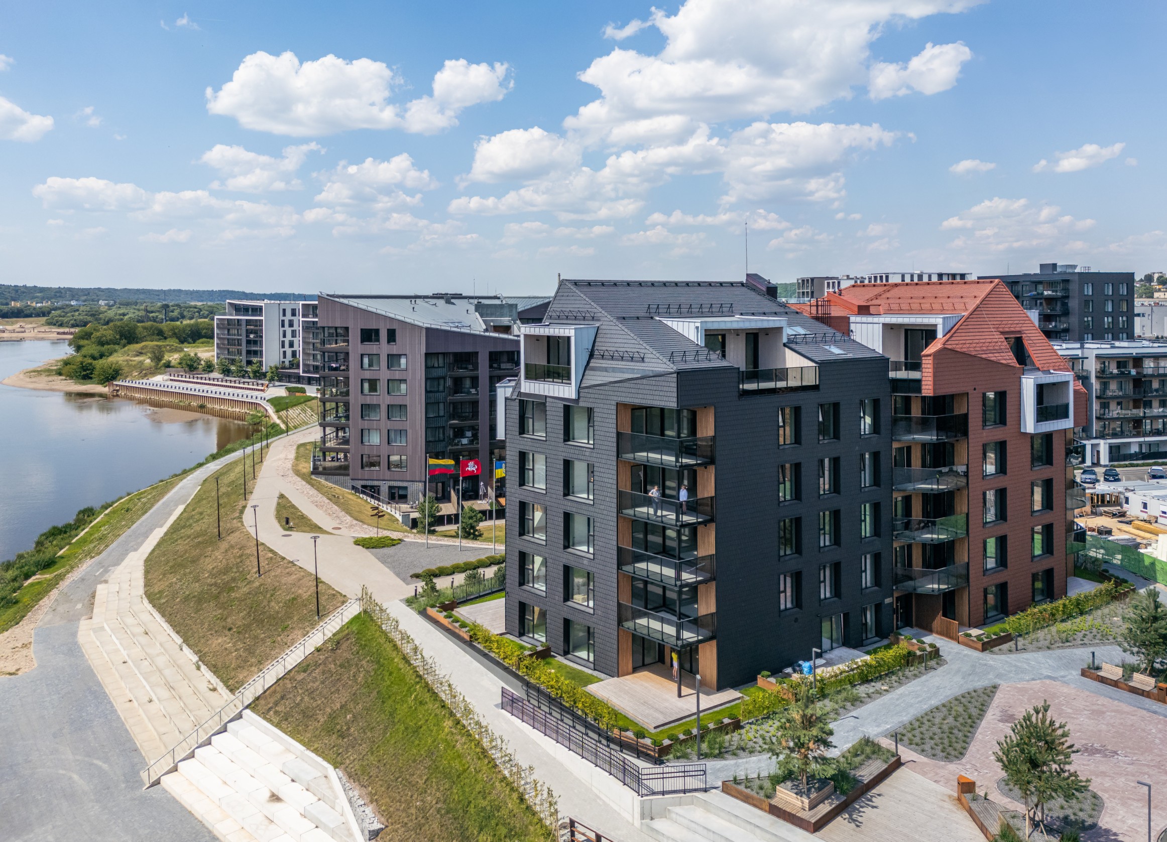 „JP Architektūra“ studijos suprojektuoto A++ energinio naudingumo klasės namas akį trauks itin estetišku ventiliuojamu keraminių čerpių fasadu ir stogu. Namo butai turės erdvius balkonus ir terasas, suteikiančius galimybę mėgautis kokybiško poilsio akimirkomis, upės suteikiama gaiva ir vaizdais į Kauno senamiestį bei Santaką. Visuose butuose taip pat bus įrengti dideli, iš išorės aliuminiu kaustyti mediniai langai.