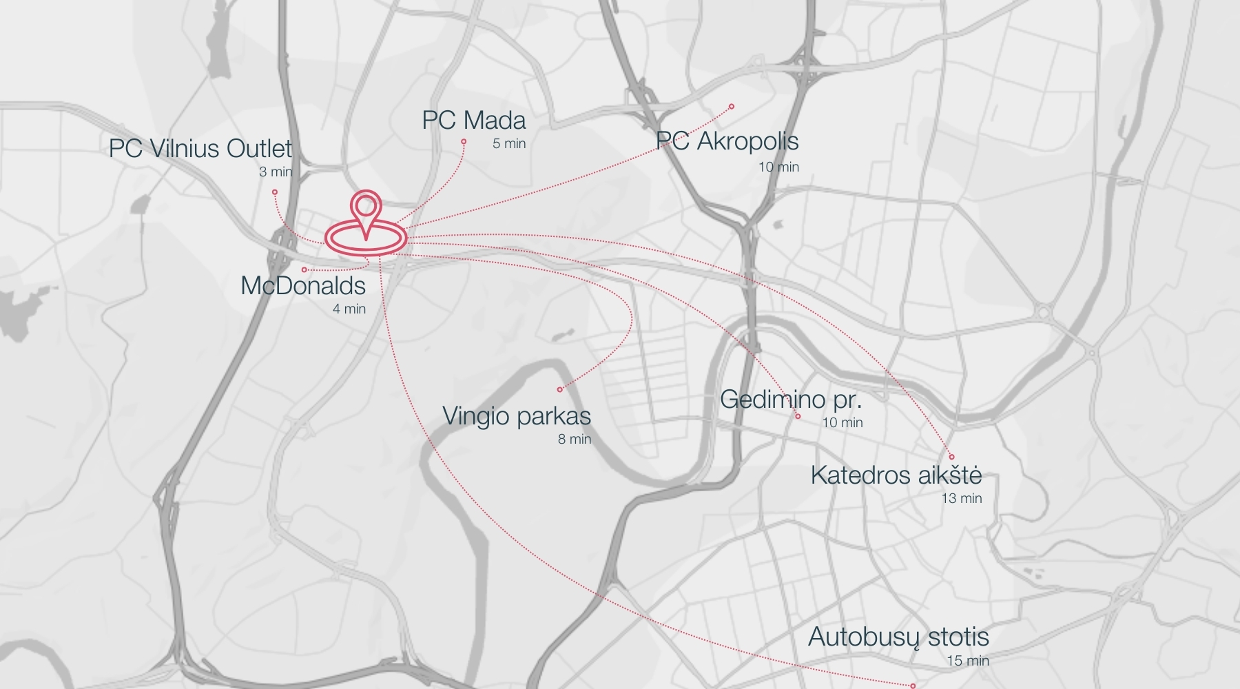 Čia pat „Vilnius Outlet" prekybos centras su pramogų erdvėmis, vaikų žaidimų zonomis, restoranais, sporto klubu ir kino erdve. Viskas, ko reikia patogiam gyvenimui, pasiekama ranka.